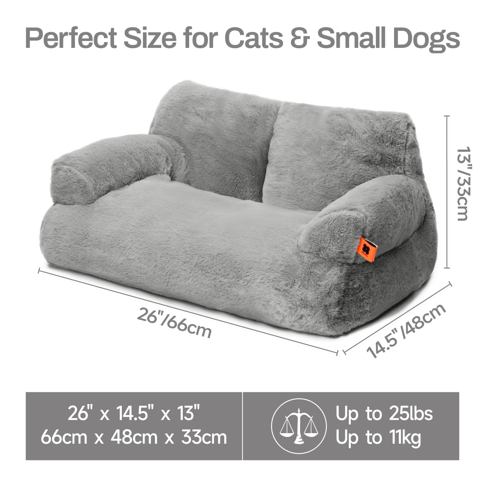 MEWOOFUN groß Katzenbett kleines Hundesofa Flauschig und waschbar Katzensofa Hundebett für Katzen, weich Katzenbett katzencouch mit Rutschfester Unterseite, Grau 66x48cm