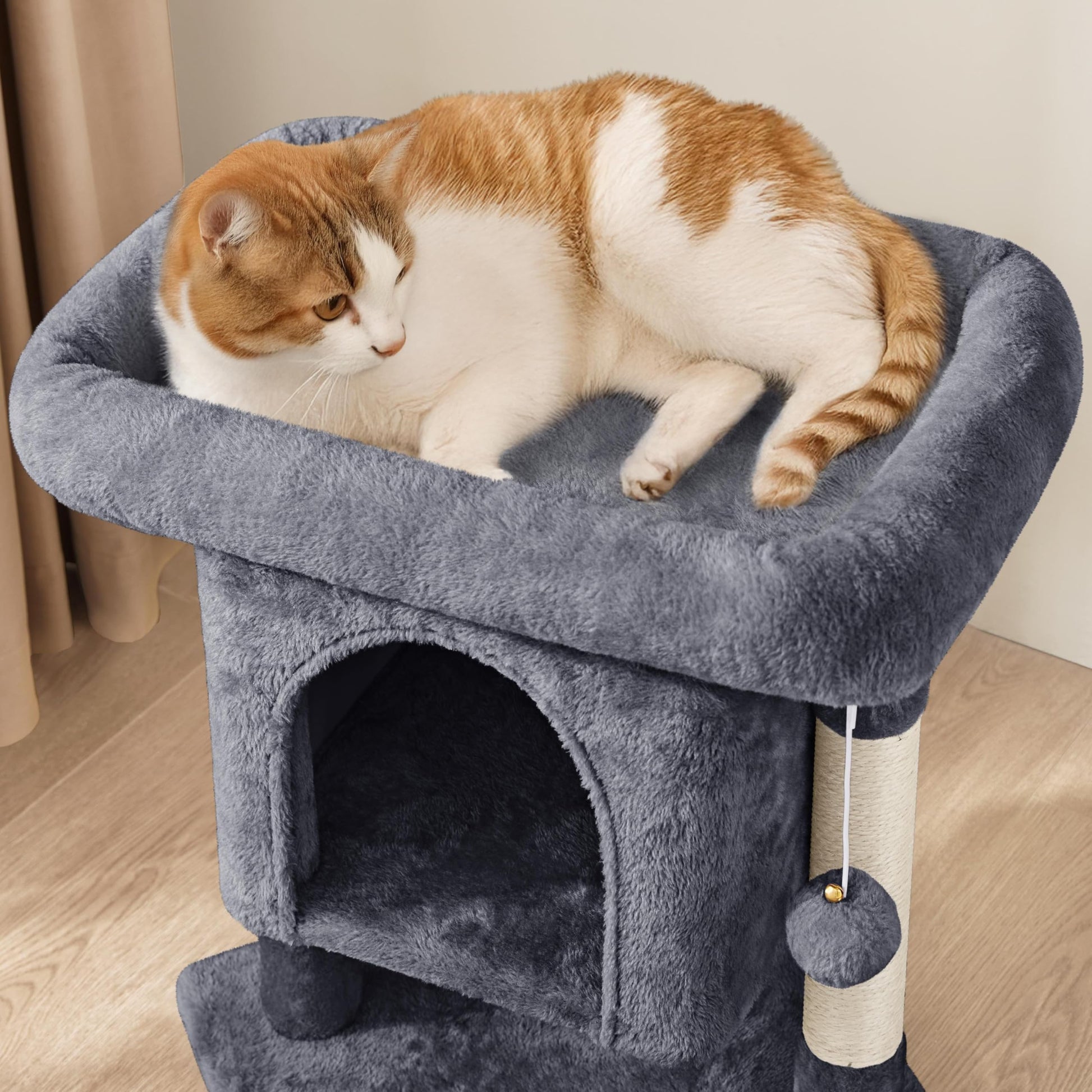 - Geprüfte Materialien: Dieser Kratzbaum aus FSC-zertifizierten Spanplatten der EU-Klasse E1 ist mit weichem Plüsch und strapazierfähigem Sisal bezogen. Sie sorgen für Haltbarkeit und fördern die Gesundheit Ihrer vierbeinigen Begleite