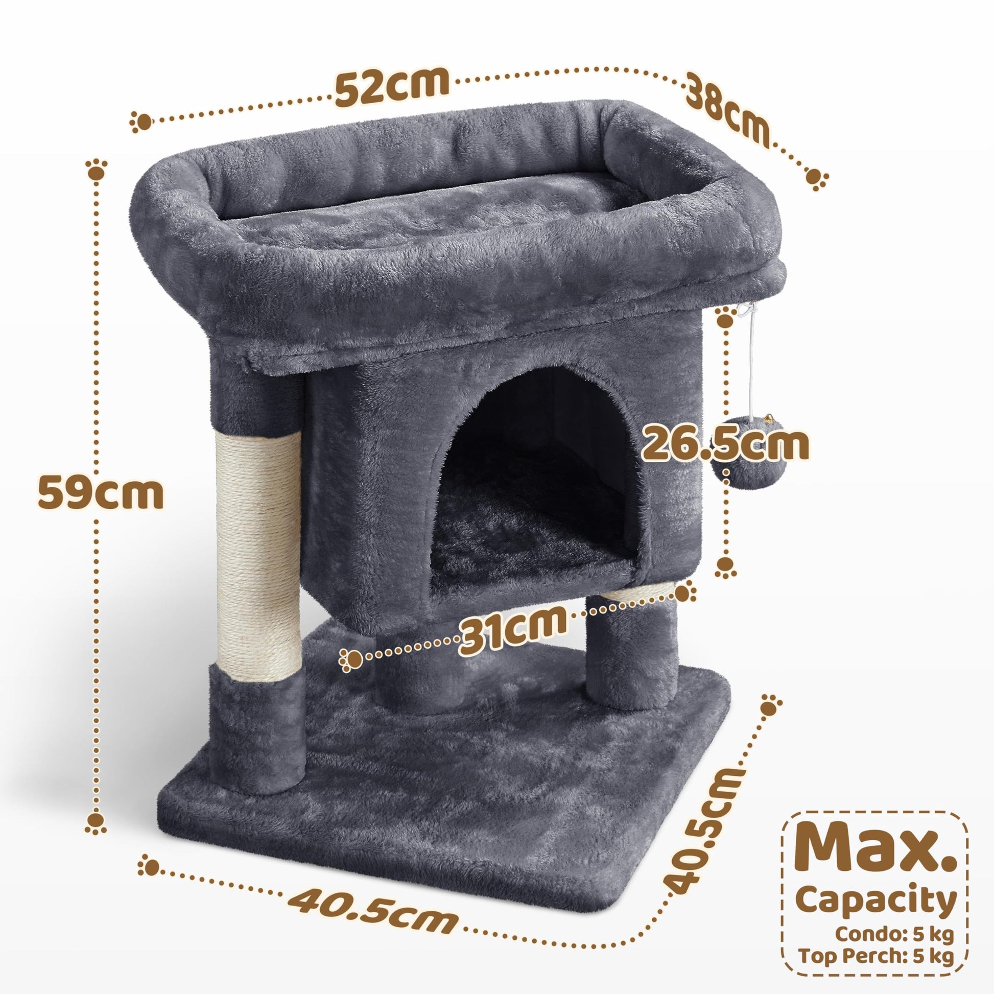 Katzenkratzbaum 60 cm – Kompakt, Sisal & Kuschelhöhle, dunkelgrau